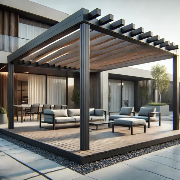 Wzbogać swoją przestrzeń zewnętrzną dzięki naszym eleganckim, odpornym na warunki atmosferyczne pergolom.